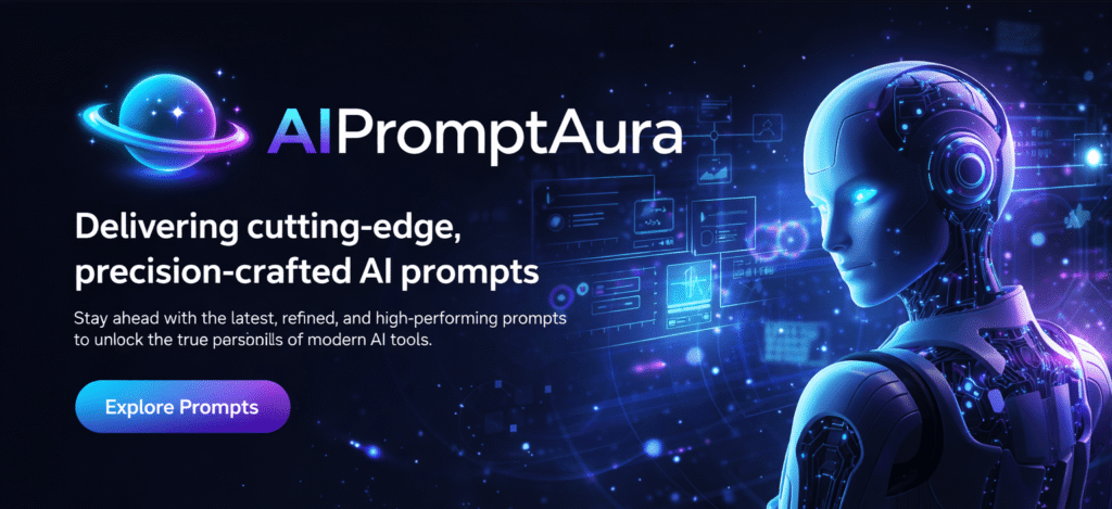 Welcome to AIPromptAura, a premium digital platform dedicated to delivering the latest, most refined, and high-performing AI prompts. Founded in 2026, AIPromptAura bridges the gap between human creativity and advanced artificial intelligence by providing prompts that are precise, practical, and continuously updated.